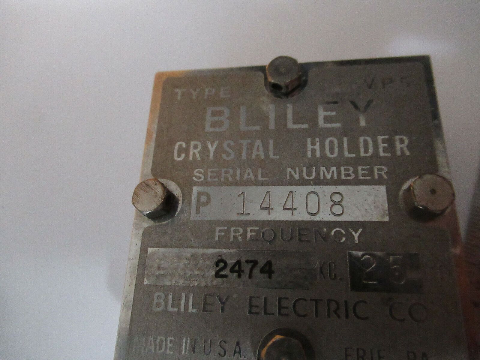 ANTIQUE 1930s QUARTZ RADIO CRYSTAL VP5 BLILEY ELECTRIC FREQUENCY CONTROL F4-A-02