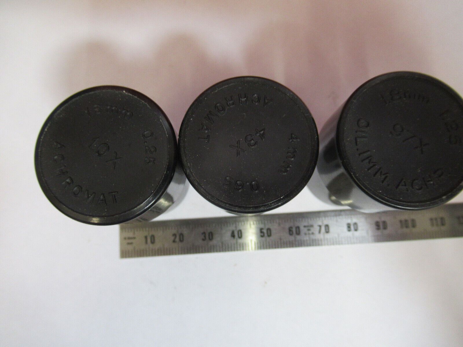 ANTIQUE BAUSCH LOMB LOT EMPTY OBJECTIVE PLASTIC CANS MICROSCOPE AS IS &S9-A-35