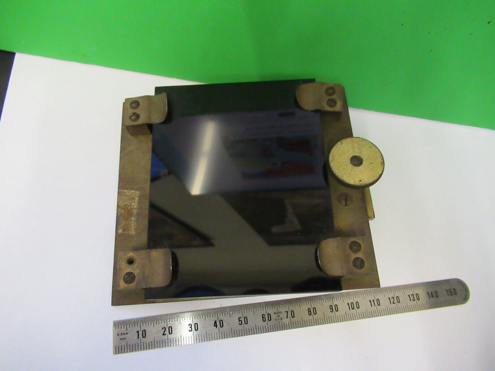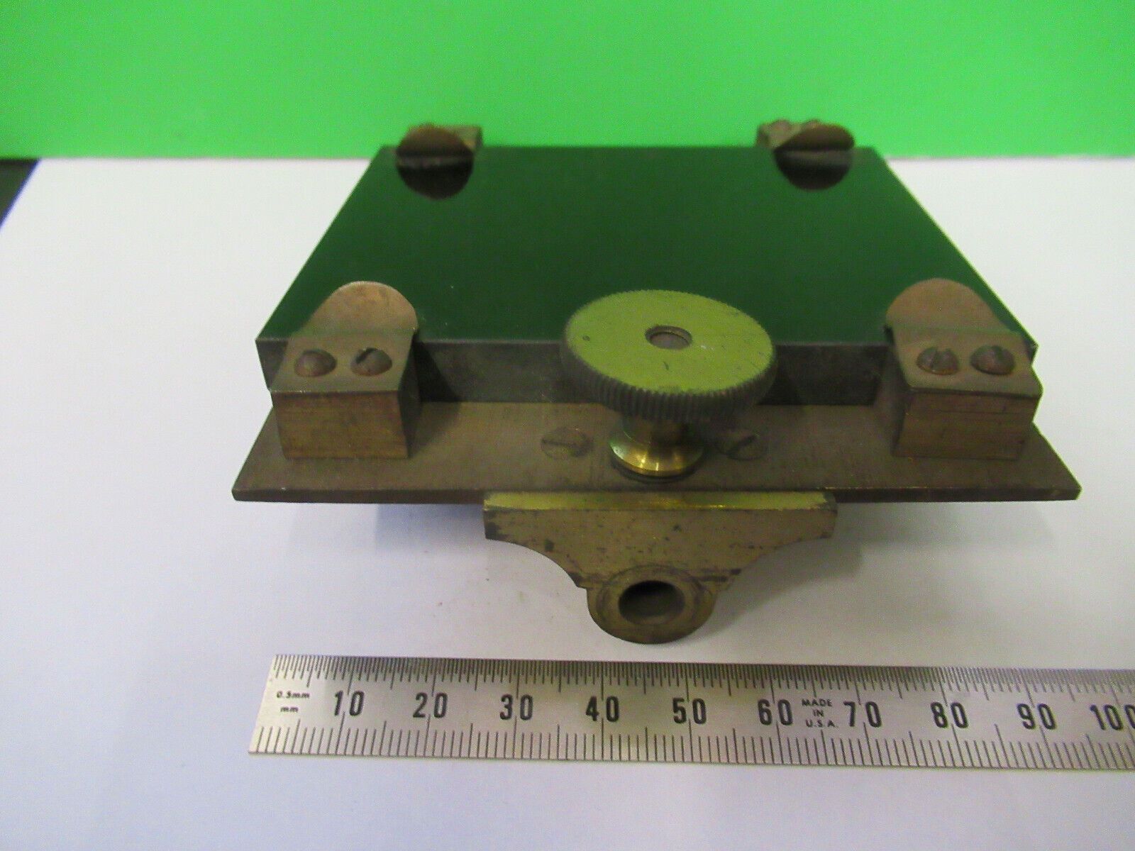 ANTIQUE BRASS STAGE TABLE UNKNOWN RARE MICROSCOPE PART AS PICTURED &Z4-B-80