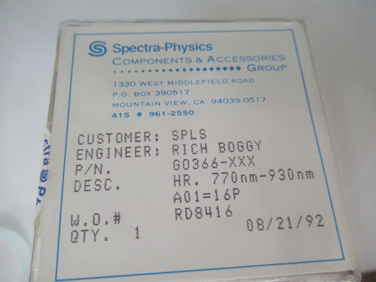 OPTICAL PRO SPECTRA PHYSICS HR 770-930 nm DICHROIC OPTICS AS PICTURED &W7-B-05
