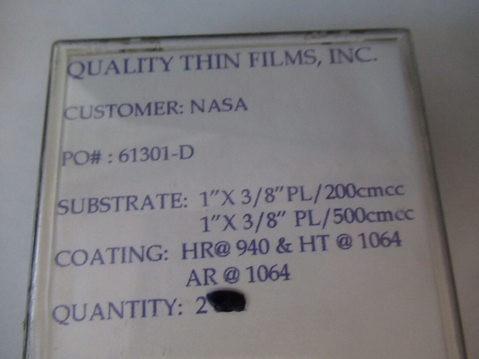 ex NASA OPTICAL TWO LENS 1064 nm LASER OPTICS AS PICTURED &W7-B-27